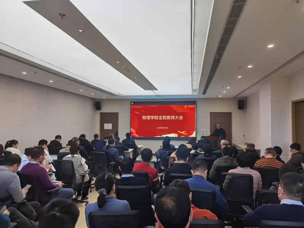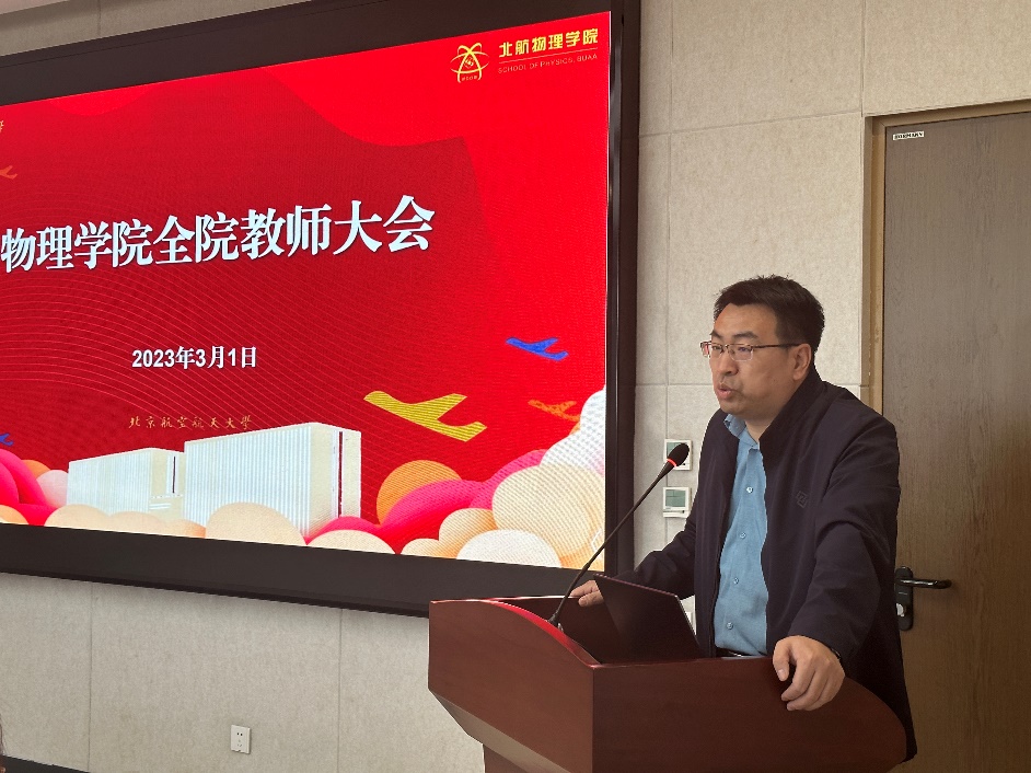 吕广宏经理传达了学校2023年度工作会暨第九届教职工代表大会第四次会议精神,全面解读了会议要点,对学院2023年重点工作做出部署。他指出,学院要更加突出内涵式发展,要把物理团队建设作为发展根基,完善学科体系,强化平台能力建设,统筹学科资源配置,强化自由探索和有组织科研的结合。要加强人才队伍建设,推动团队队伍高素质发展,鼓励青年人才挑梁担纲。要持续优化课程体系、课程团队和课程质量,进一步发挥学科负责人的作用。