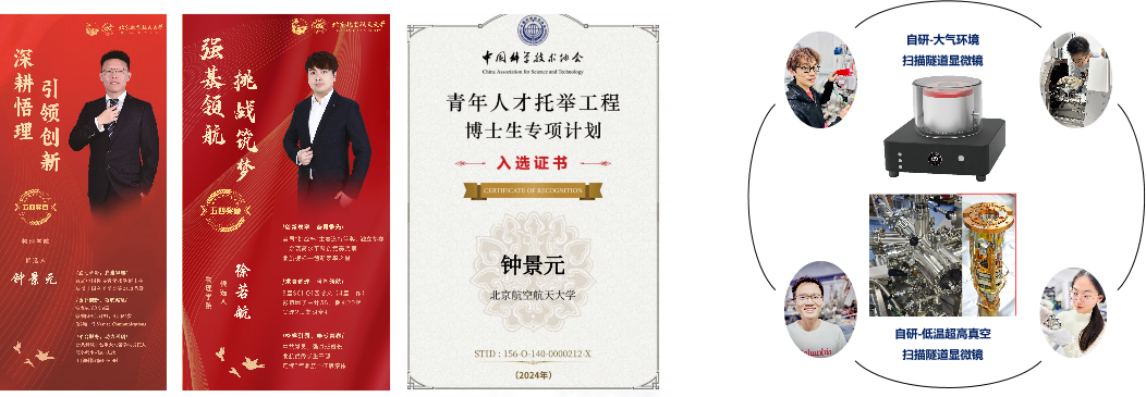 持续建设育人平台,学业导师6人,研究生思政导师4人,充分发挥导师在导学、导心、导向、导行方面的作用。团队本科生在二维材料、扫描隧道显微镜开发、低维异质结构研究等领域开展研究工作,获得包括第十六届、十八届、十九届“挑战杯”全国老员工课外学术科技作品竞赛特等奖三项(破全国纪录)、第十二届北京市老员工物理实验竞赛一等奖、北航“冯如杯”员工学术科技作品竞赛一等奖等国家级奖项3项,省部级10项。过去三年,团队研究生获得“青年托举”项目、国家奖学金、北京市优秀毕业生、北航“五四”奖章、国家奖学金、永利官网优秀博士一等奖学金、永利官网博士研究生卓越学术基金等项目及荣誉50余项。